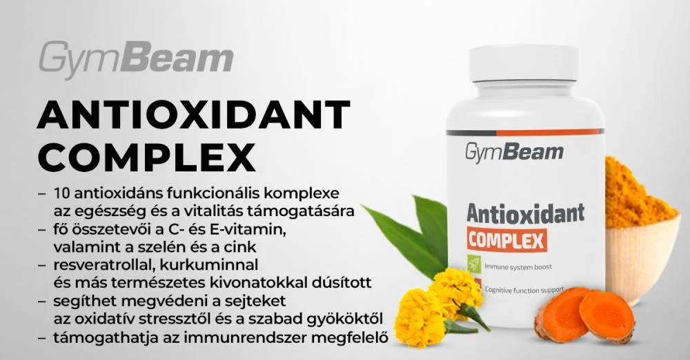 Az Antioxidáns komplex az egészségre és a vitalitásra jótékony hatásokat gyakorló vitaminok, ásványi anyagok és növényi kivonatok gondosan válogatott kombinációja. Az étrend-kiegészítő legfontosabb összetevői a C- és E-vitamin, a cink és a szelén; ezek a jól ismert antioxidánsok támogatják a sejtek oxidatív stressz elleni védekezését. A fentiek mellett a készítmény természetes antioxidánsokat, rezveratrolt, kvercetint, kurkumint, luteint és zeaxantint, tartalmaz, amik tovább fokozzák a termék potenciálját.