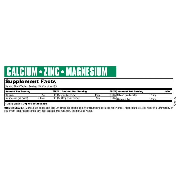 A Kalcium, Cink, Magnézium a szervezet helyes működéséhez elengedhetetlen ásványi anyagok - kalcium, magnézium, cink egyedi kombinációja. Minden adag 1000 mg kalciumot és bór, réz, magnézium és cink elemeket tartalmaz. Ez a kombináció fokozza a szervezet ellenállóképességét, hozzájárul az idegrendszer jó kondíciójához, felbecsülhetetlen a gyógyulás és a fokozott fizikai megterhelések időszakaiban, segít a hajhullásnál, hatásos a pattanások esetében, elősegíti a sebek és a fekélyek gyógyulását, férfiaknál biztosítja a prosztata helyes működését, nőknél támogatja a rendszeres menstruációt, csökkenti az álmatlanságot és a depressziót, segít a reuma gyógyulásában.