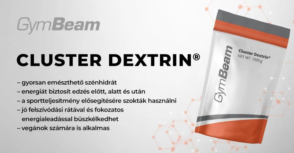 A Cluster Dextrin® egy szénhidrát-energiaforrás, amely segítheti a sportteljesítményedet. Kukoricakeményítőből (amilopektinből) állítják elő, amelyet egy speciális enzimmel hasítanak fel. Ennek eredménye a többszörösen elágazó láncú ciklikus dextrin (HBCD), amely jól fel tud szívódni a szervezetben. Magas molekulatömegének köszönhetően gyorsan áthalad a gyomron. Amint eléri az emésztőrendszert, átjut a vékonybélbe, ahol ciklikus szerkezetének köszönhetően lassabban emésztődik. Az energia tehát fokozatosan szabadul fel belőle a véráramba. Ez biztosítja a folyamatos energiaellátást edzés közben. További előnyök közé tartozik, hogy könnyen emészthető és jó tolerálható az intenzív fizikai aktivitás során is.