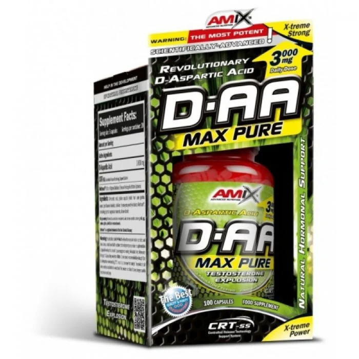 A D-AA Max Pure kapszula formájában megvásárolható tesztoszteronfokozó, amely D-aszparaginsavat tartalmaz, ezáltal anabolizátorként és edzés előtti stimulánsként funkcionál. Az aszparaginsav aminosav egyike azoknak az aminosavaknak, amelyek célzott hatással bírnak: az aszparaginsav hatást gyakorol az endokrin rendszerre és befolyásolja a növekedési hormon és a tesztoszteron termelését. A tesztoszteron egy férfi nemi hormon, amely fontos a teljes vitalitás megőrzése érdekében, segít az izomtömeg építésében, a regenerációs arányban, a szexuális életben, ezenkívül fontos szerepe van a termékenységben is.