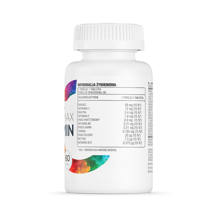 A Magnez MAX + Vitamin egy 11 vitamint és ásványi anyagot tartalmazó keverék, amely optimális egészséget biztosít. A termék fő összetevője a magnézium, amely segít csökkenteni a fáradtságot és egyensúlyban tartja az elektrolitszintet. Ráadásul biztosítja az idegrendszer, az elme, az izmok, a csontok és a fogak megfelelő működését. A táplákékkiegészítő vegánoknak is alkalmas. Vitaminok keverékét is tartalmazza, amely szinte az összes biokémiai folyamatra hatással van az emberi szervezetben: