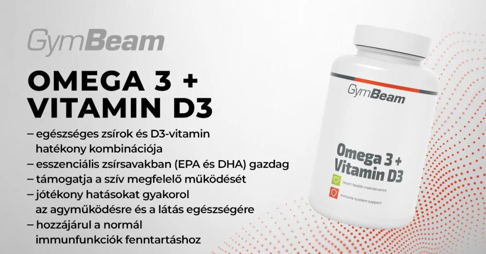 Az Omega 3 + D3-vitamin egészséges zsírok hatékony keveréke omega-3 zsírsavak és a D3-vitamin formájában. Az eikozapentaénsavat (EPA) és dokozahexaénsavat (DHA) tartalmaz, amelyek hatással vannak a szív megfelelő működésére. Van még benne D-vitamin, amely részt vesz az immunrendszer valamint a csontok és izmok optimális működésének fenntartásában.Omega 3 + D3-vitamin - a D3-vitamin jól felszívódó formájának és egészséges EPA és DHA zsírsavak keveréke, amelyek hozzájárulnak a szív megfelelő működéséhez